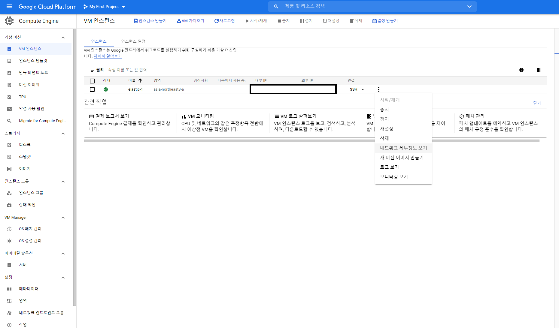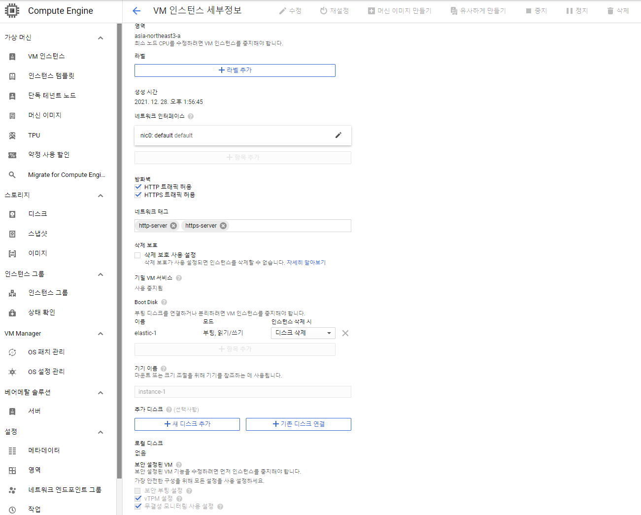 • 대상 VM인스턴스 세부정보에서 수정 클릭