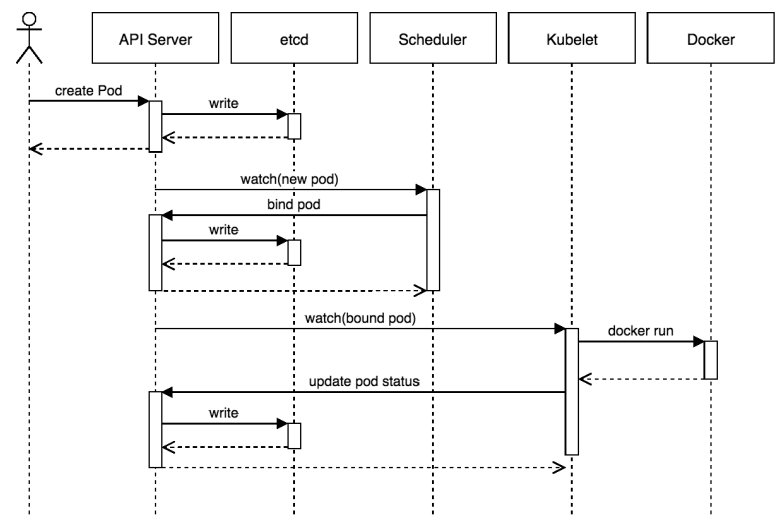 - API Server는 Pod 실행 결과를 etcd에 기록