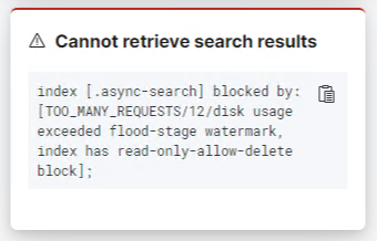 index [.async-search] blocked by: [TOO_MANY_REQUESTS/12/disk usage exceeded flood-stage watermark, index has read-only-allow-delete block] 발생 증상