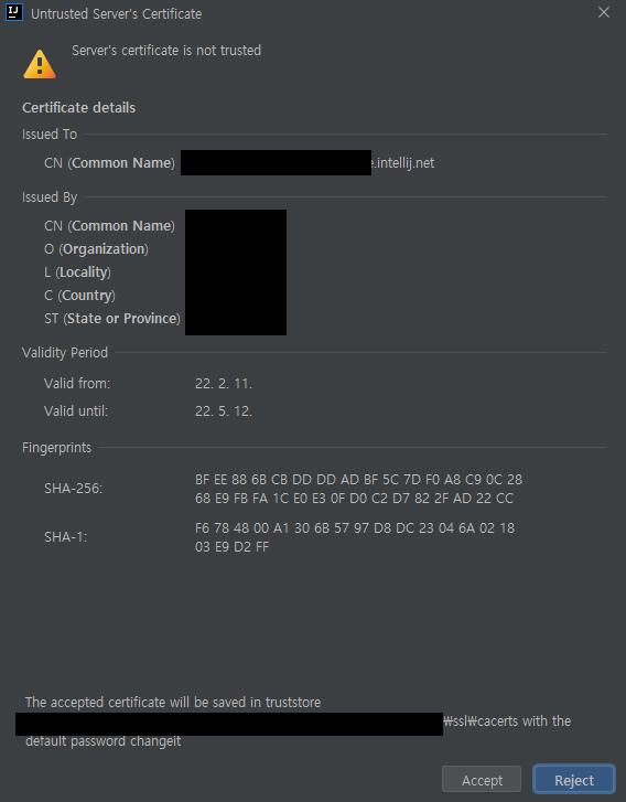 Untrusted Server's Certificate가 계속 발생하는 경우 해결 방법
