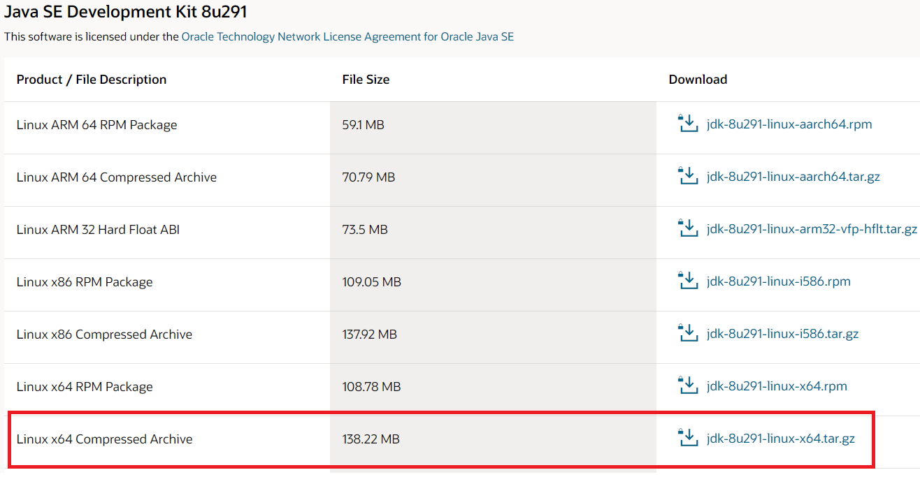 - https://www.oracle.com/java/technologies/javase/javase-jdk8-downloads.html에서 JDK 다운로드 (직접업로드하거나, wget을 통하여 설치)