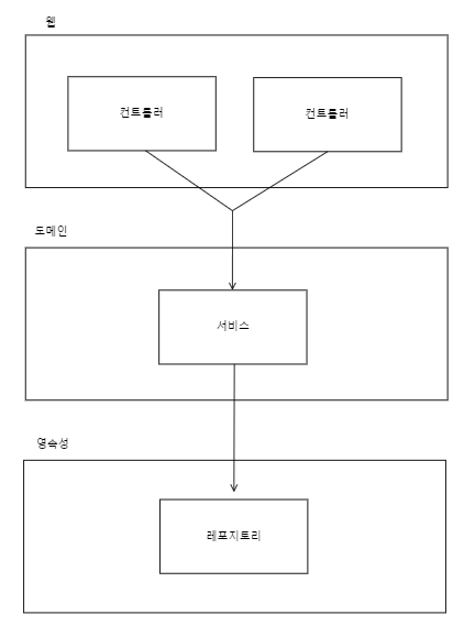 - 계층형 아키텍처는 같은 계층에 있는 컴포넌트나 아래 계층에 접근이 가능하기 때문에 암묵적으로 용인하면 영속성 → 도메인으로 접근하는 코드가 늘어나게 됨