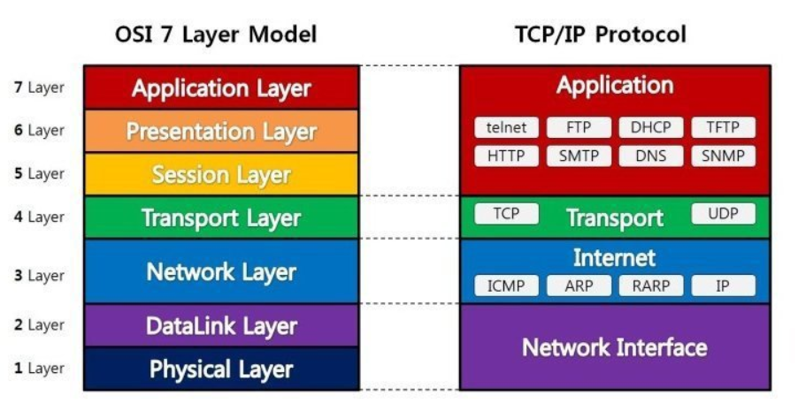 - 네트워크 통신을 7단계로 나눈 것이라 보면 됨