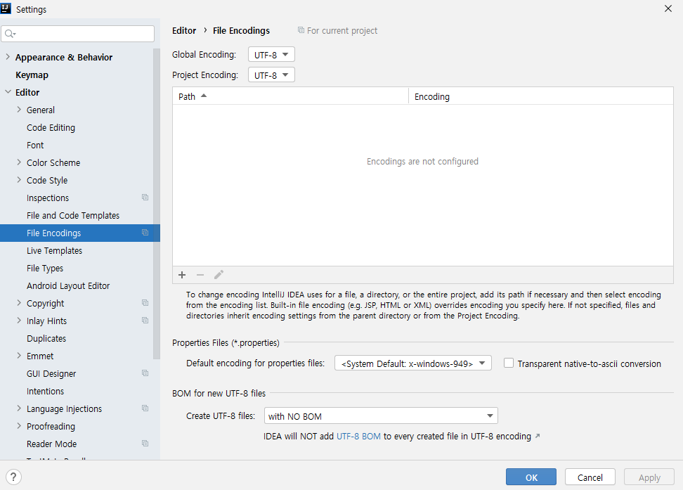 [IntelliJ] error: unmappable character (0xEB) for encoding x-windows-949 해결