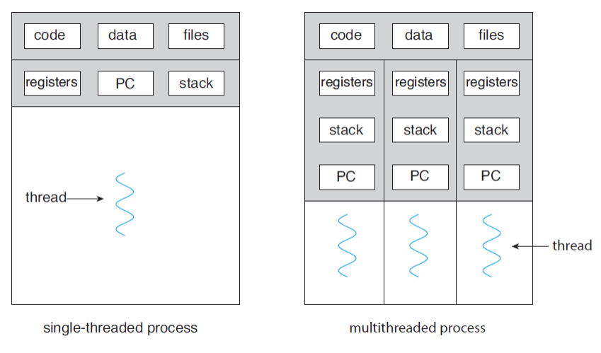 - 한 프로세스에 쓰레드를 여러개 가지게 되면 멀티쓰레드가 됨